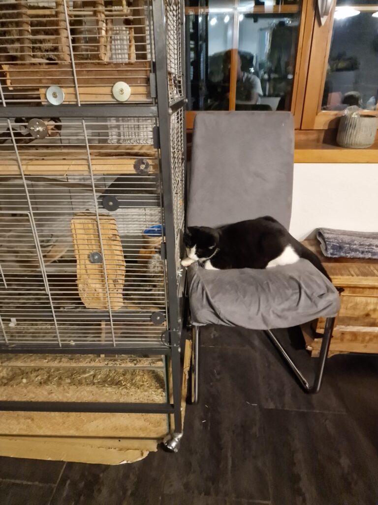 Alois ist nun bereits schon zehn Jahre alt. Vor einiger Zeit mussten die Zimmermanns mit ihm zum Arzt und da wurden bei ihm zwei Hauttumore diagnostiziert, welche jedoch trocken und geschlossen sind. Der Tierarzt meinte, die Zimmermanns sollen es aktuell so lassen und nichts machen, sobald die Tumore aber aufgehen oder eitern, würde er dann aufgrund der schmerzen eingeschläfert werden. Aber bis jetzt ist er fit, gefrässig, interessiert, geht im Käfig hoch und runter und kratzt sich zum Glück auch nicht an den Tumoren. Alles Tip-Top.
