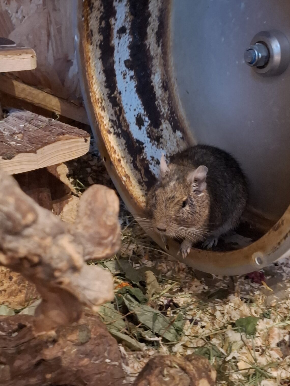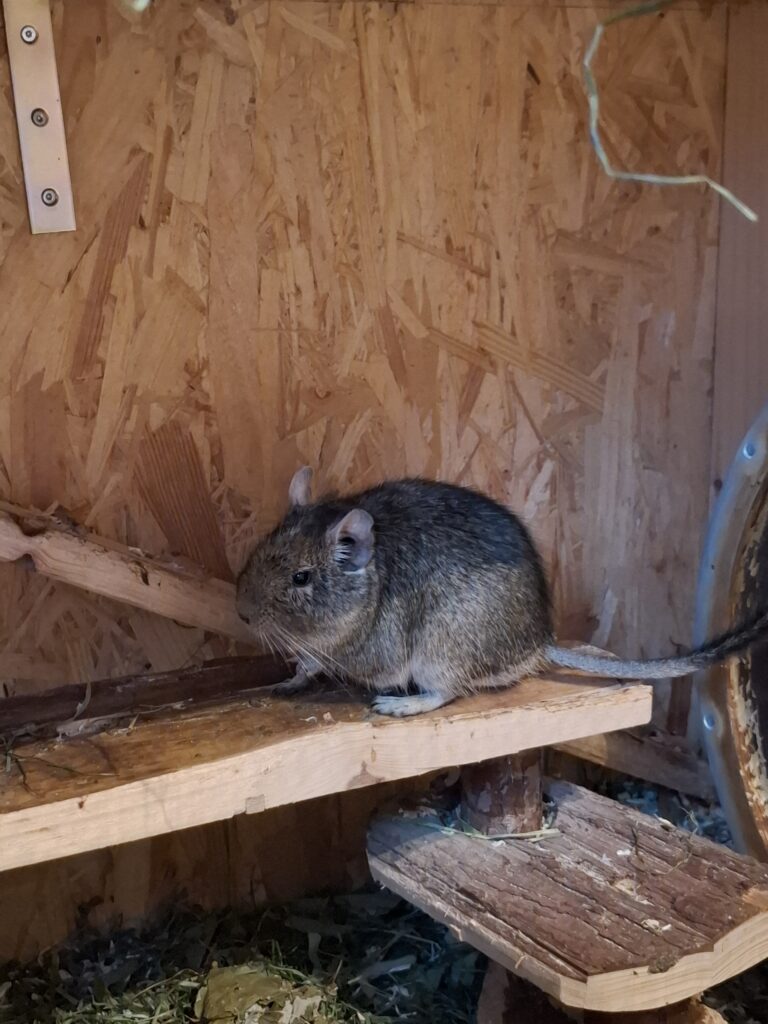 Leider ist mein Sheggy seit gestern Nacht alleine. Sheggy ist ein unkastrierter agouti farbener, ca. 3.5 jahre alter Deguherr. Ich nahm ihn bei mir auf nach einer Tierschutzaktion mit zwei anderen Jungs.